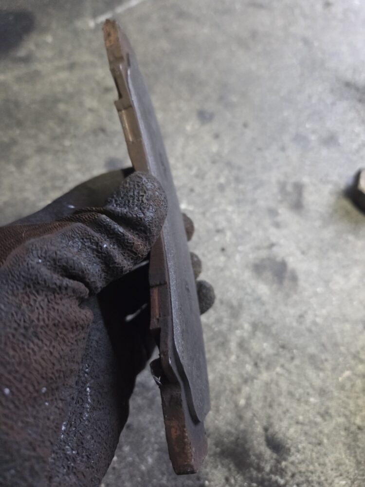 エルフ・ブレーキパット 未分類 2025.11.08 先日オイル交換で入庫したエルフですが ブレーキ鳴きがひどく何かおかしいなっと思い タイヤを外して点検してみるとブレーキパットの残量が無い 危ないところでした お客様に連絡をし交換させて頂きました エルフもオートマ車だった為ブレーキの減りも早いようです いいタイミングで気が付く事が出来良かったです