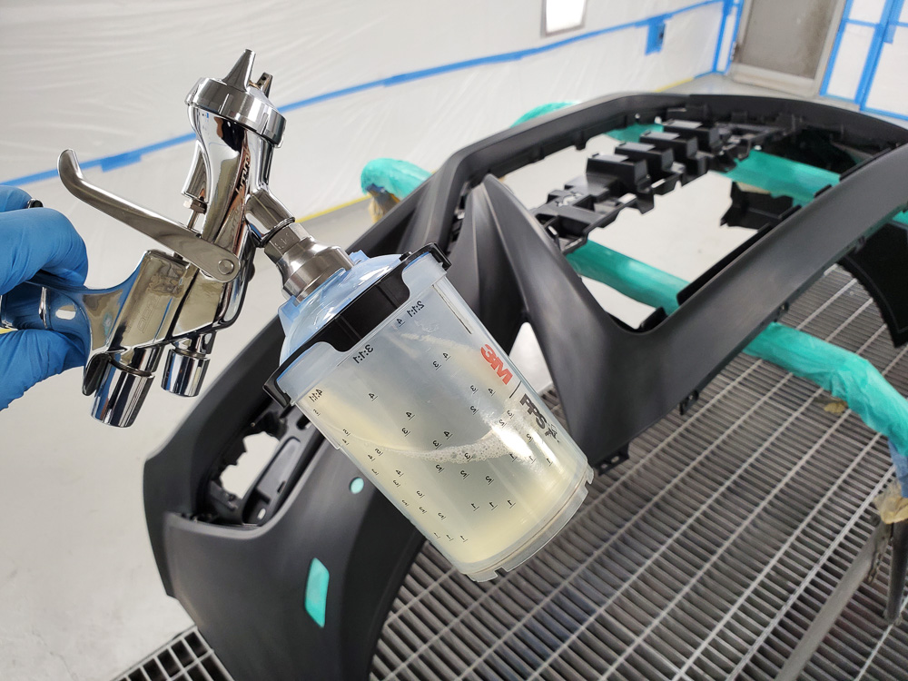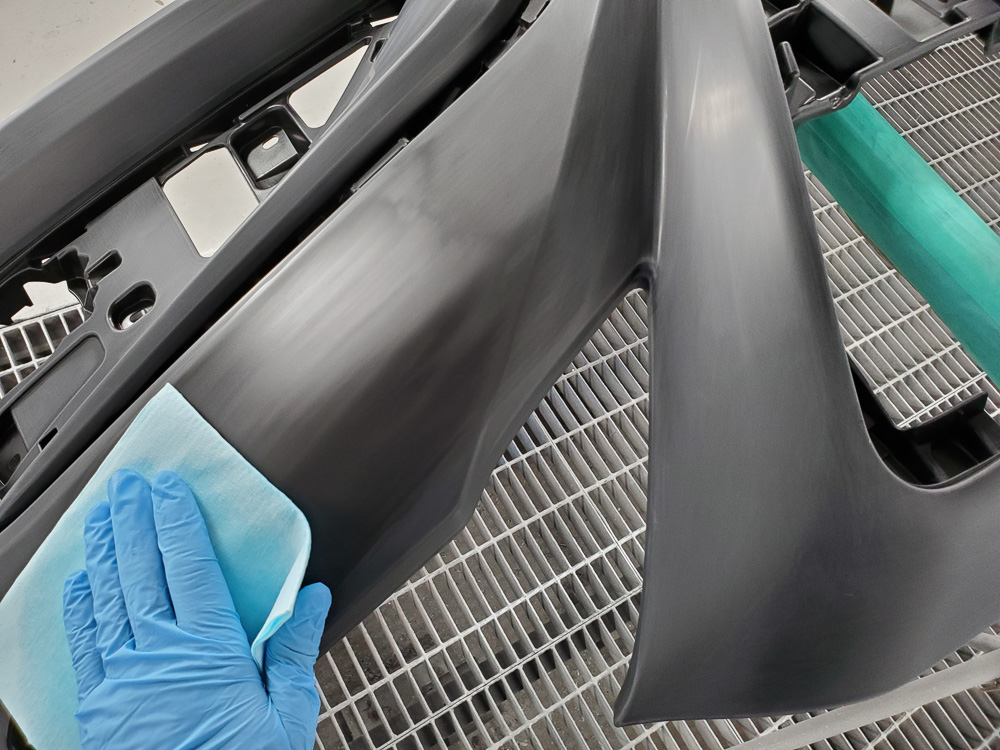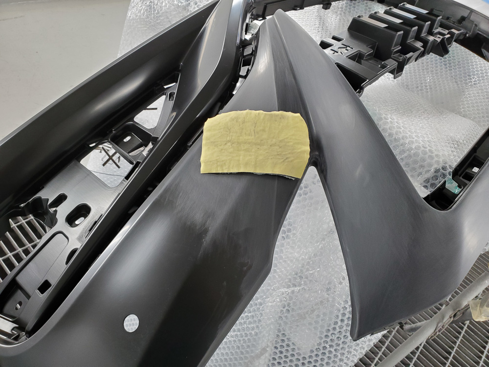 と言うのも、樹脂バンパーは鋼板と違って塗料の密着性が良くありません。
