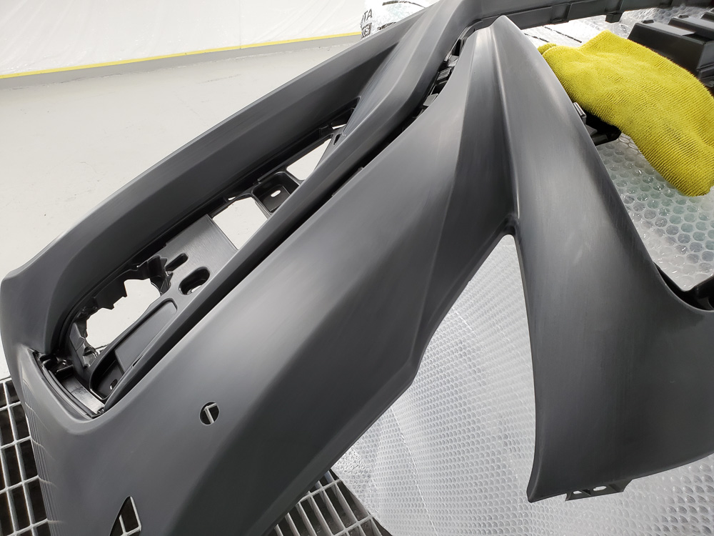 まず、こちらが新品の無塗装バンパーになります。