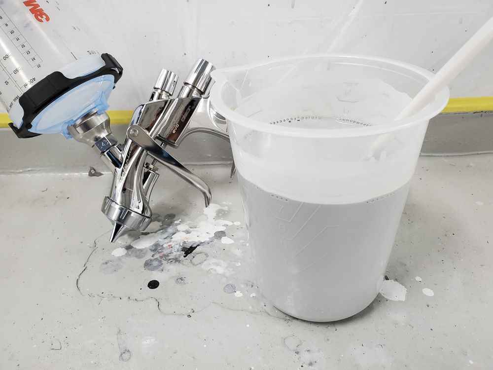 あくまで「艶が出る程度」です。これを2回にわけて吹き付けます。